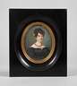 Brustbildnis einer jungen Frau im schwarzen schulterfreien Kleid, mit korallroter Perlenkette und Rose im schwarzen Haar, fein mit spitzem Pinsel festgehaltene Miniaturmalerei, um 1820, links signiert "F. Dubois", minimale Altersspuren, rückseitig fragmentarische alte frz. Büttenbuchseite als Abdeckung, hinter Glas im rechteckigen ebonisierten Rahmen mit ovalem, von ziseliertem Messingprofil gefasstem Bildausschnitt, Falzmaße ca. 12 x 8,5 cm. Künstlerinfo: frz. Maler, Pastellzeichner und Miniaturmaler sowie Graphiker und Karikaturist (ca. 1760 bis ca. 1822), wohl Schüler von Johann Heinrich Schröder, beschickte ab 1780 den Pariser "Salon de la Correspondance", ab Mitte der 1880er Jahre entstehen Miniaturen, mit denen er 1895-1804 den Louvre beschickte, bis 1804 als Hofmaler von Louis Joseph, Prince of Condé in Paris tätig erwähnt, anschließend bis 1818 in St. Petersburg, hier 1813 zum Mitglied und Professor der Kaiserlichen Akademie der Künste St. Petersburg ernannt, fertigte Portraits für den Hof des Zaren Alexander I. und den Adel, ab 1818 in London, beschickte hier 1819-20 diverse Ausstellungen - vor allem die Ausstellung der Royal Academy, vertreten im British Museum London, im Puschkin-Museum und der Tretjakow-Galerie Moskau sowie in der Eremitage in St. Petersburg, Quelle: Thieme-Becker, Saur "Bio-Bibliographisches Künstlerlexikon", Bénézit, Ernst Lemberger "Meisterminiaturen aus fünf Jahrhunderten" und englische Wikipedia.