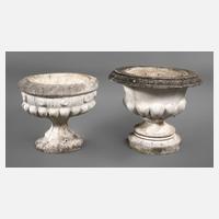 Steinguss, 2. Hälfte 20. Jh., beide mit godronierter Wandung, Oberfläche mit Altersspuren, H 45 cm, D 39 cm.