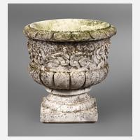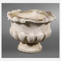 Steinguss 2. Hälfte 20. Jh., mit godronierter Wandung und volutenverzierter Mündung, mit Ablauf für Wasser, H 39 cm, D 52 cm.