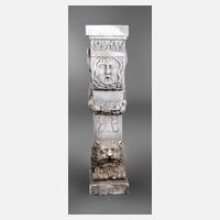 wohl 2. Hälfte 19. Jh., Sandstein gehauen, dreiseitig verziert mit Voluten, Festons, einem Löwen und Maskaronen, Altersspuren, H 106 x B 27 x T 23 cm.