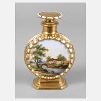 um 1850, Adlermarke mit den Buchstaben SPM, gepinselte Nummer 3759 36, ovale Vase mit üppigen Reliefs, Rollwerk und Muschelmotiven, florale und ornamentale Vergoldung, schauseitig feinste Lupenmalerei, Darstellung der Universität in Breslau mit Personenstaffage, Vergoldung etwas berieben, sonst gute unbeschädigte Erhaltung, H 19,5 cm.