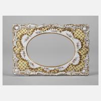 Mitte 20. Jh., Porzellan, grüne Stempelmarke Dresden Germany, feine Reliefgoldmalerei, Gitterdekor und Blütenranken, reliefierte Rocaillen, polychrom gemalte Streublümchen, gute Erhaltung, Maße 22 x15 cm bzw. 13,5 x 9,5 cm.