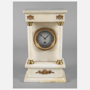 um 1900, Front verziert mit zwei Rundsäulen, Messingkapitellen und -basen sowie klassizistischen Applikationen, Junghanswerk ohne Schlag, dieses verharzt, nicht funktionstüchtig, H 37 cm.