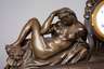 Frankreich, Ende 19. Jh., bezeichnet Le Jour & la Nuit, auf zweifarbigem Marmorsockel montierte Figuren aus bronziertem Metallguss (Nachbildung der Figuren von Michelangelo aus der Medici Kapelle in Florenz), Pendulenwerk mit Halbstundenschlag auf Glocke, feines, mit Festons verziertes Emailziffernblatt, Werk läuft, mit Schlüssel, H 32 x B 62 x T 14 cm.