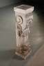wohl 2. Hälfte 19. Jh., Sandstein gehauen, dreiseitig verziert mit Voluten, Festons, einem Löwen und Maskaronen, Altersspuren, H 106 x B 27 x T 23 cm.
