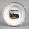 Pfennigmarke und Zeptermarke 1849–1870, bezeichnet ”Das Museum in Berlin”, im Spiegel feinste Lupenmalerei, Blick auf das Museum im Sommer mit Personenstaffage in goldgerahmter Kartusche, Vergoldung auch am Rand, diese stärker berieben, D 21,5 cm.