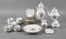 1920er Jahre, grüne Stempelmarken, bestehend aus Kernstück und zusätzlicher Kaffeekanne, zwei Kuchentellern mit seitliche Handhaben, elf Tellern, zehn Untertassen und zwölf Tassen (sieben davon später ergänzt), dazu ein Untersetzer, alles mit Blütenbuketts farbig bedruckt und vergoldet, teilweise Gebrauchsspuren, H Kaffeekanne 29 cm.
