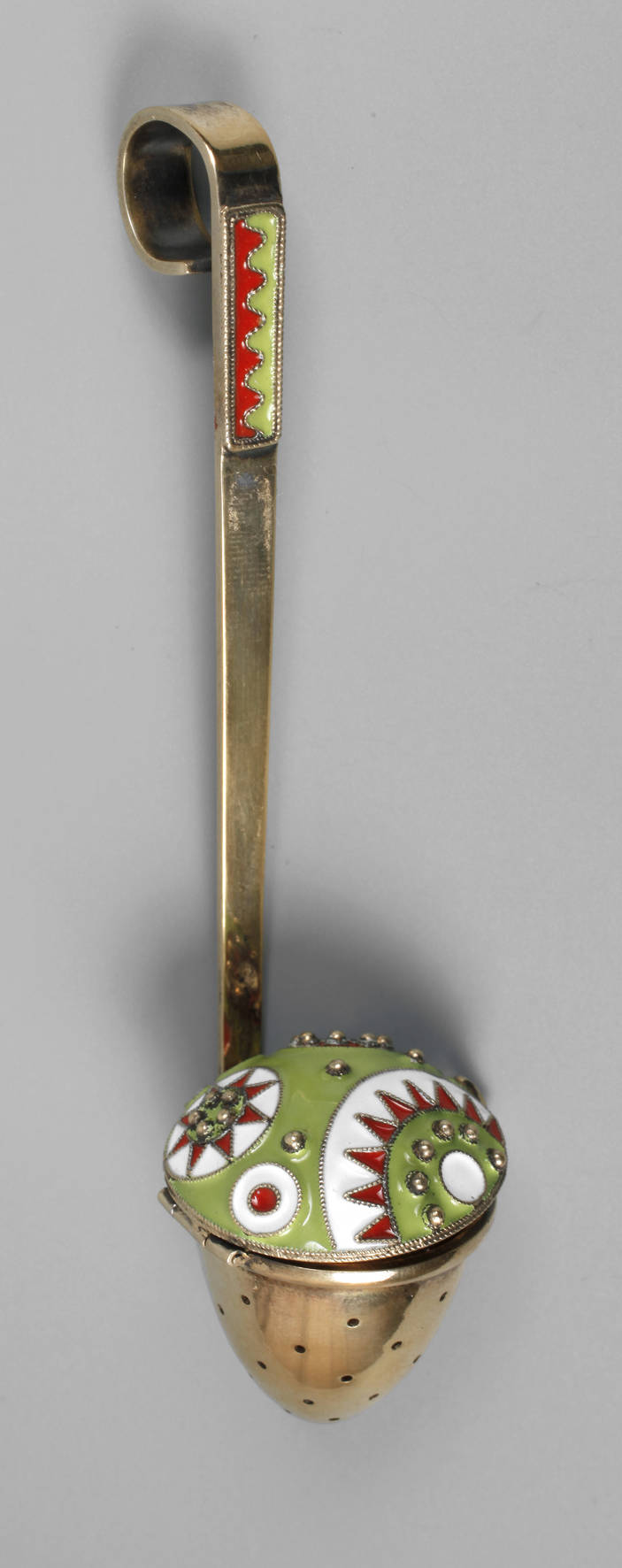 wohl 1920er Jahre, unleserlich gestempelt, Silber geprüft, vergoldet und emailliert, seitlich scharnierter Klappdeckel mit Sternenmotiven, kaum Gebrauchsspuren, L 11 cm, G ca. 35 g.