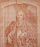 Halbfigurenbildnis eines hochherrschaftlichen älteren Mannes mit Perücke im Hermelinmantel und Brustkürass, sich auf einem Helm abstützend, vor Architekturkulisse, feine Rötelzeichnung mit wenigen Bleistiftstrichen, wohl um 1700, unsigniert, faltspurig, ohne Glas im Passepartout (verschmutzt) gerahmt, Passepartoutausschnitt 28 x 24,3 cm.