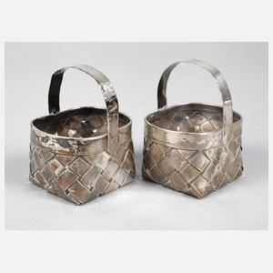 1950er Jahre, gestempelt Handmade Sterling, aus geflochtenen Silberbändern mit geflochtenem Rand und feststehendem Henkel, normale Altersspuren, H 8 cm, G ca. 94 g.