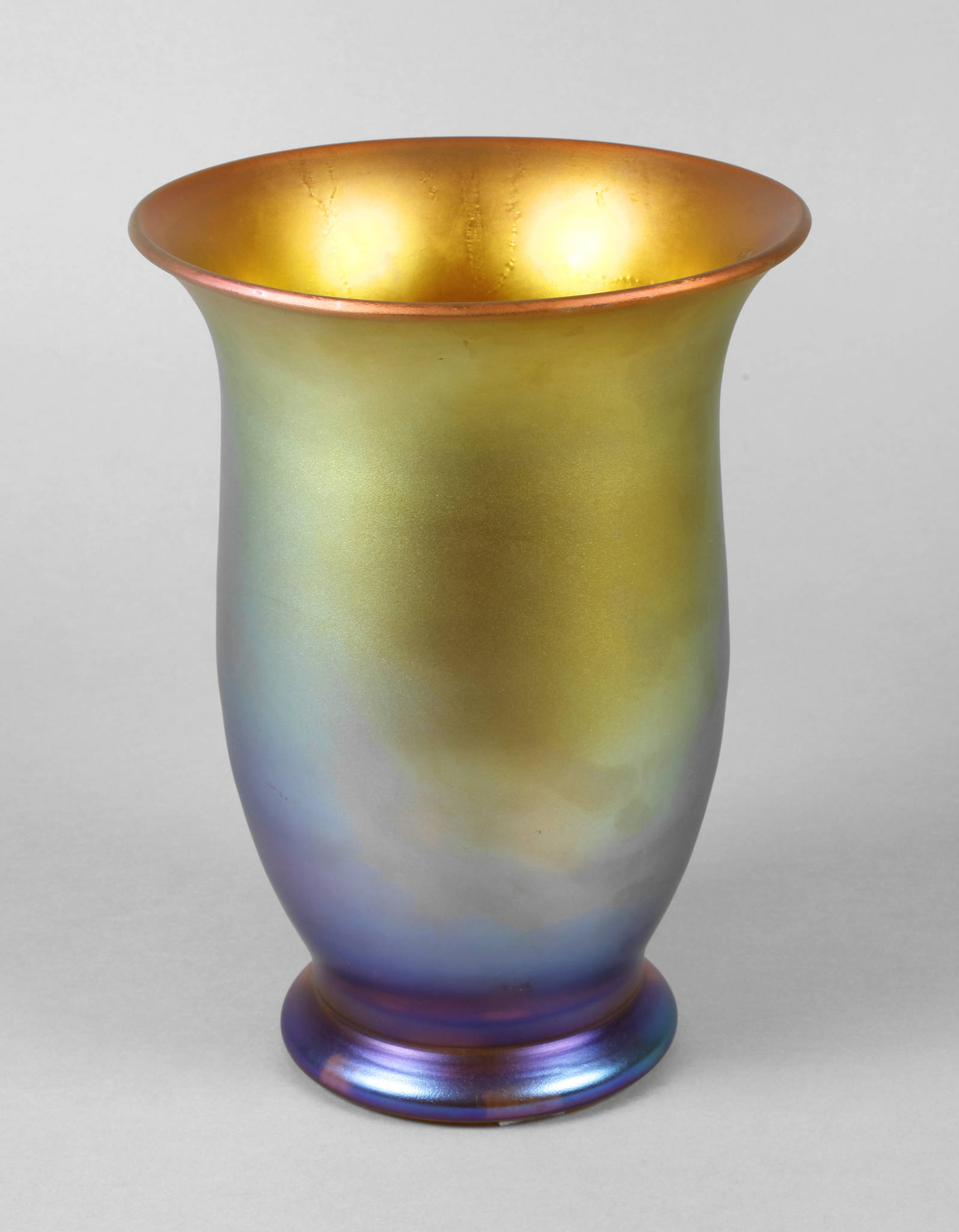 1930er Jahre, im ausgekugelten Abriss original Klebeetikett, aus massivem honiggelben, sogenanntem ”Myraglas”, mit starkem, verlaufendem Lüster, leichte Gebrauchsspuren, H 28 cm.