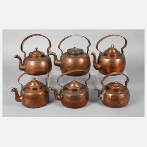 Sechs Kupferkessel