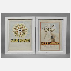 zwei Entwürfe für Schnapswerbung bzw. Schnapsetiketten der Firma Walter Krause, 1 x unten bezeichnet ”Walter Krause – Likörfabrik – Plauen i. V. Rückertstr. 7 – Ruf 1635”, Mischtechniken (aquarellierte Bleistiftzeichnungen), um 1950, unsigniert, Provenienz: Nachlass Schilling-Rest, je hinter Glas gerahmt, Blattmaß ca. 21,5 x 15 cm. Künstlerinfo: geboren als Enno Schilling, Künstlername ”Schilling-Rest”, dt. Maler, Zeichner und Graphiker (1891 Plauen bis 1976 Plauen), um 1910 Schüler der Kunstschule Plauen bei Prof. Richard Schauer, tätig als Entwerfer für die Plauener Spitzenindustrie, Mitglied der Künstlervereinigungen ”Burgsteiner” und ”Akanthus”, tätig in Plauen, Quelle: Info der Familie, Archivunterlagen der Burgsteiner sowie Adressbuch der Stadt Plauen 1925 und 1950.