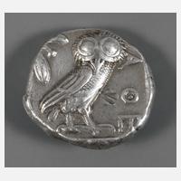 um 390 v. Chr., Silber, behelmtes Haupt der Athena, Rv. Eule, links Olivenzweig ohne Mondsichel, gering geputzt, ss+, G ca. 17,2 g.