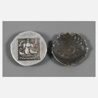 Caria/Rhodos, 125-88 v.Chr., Haupt des Helios nach rechts, Rv. Rose im Quadratum incusum P OG, ca. 1,4 g, ss+, dazu kleine, einseitig geprägte, keltische? Münze in Schüsselform, G ca. 0,24 g, ss.