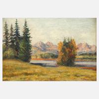 Blick über einen See auf eine Bergkette, stimmungsvolle Landschaftsmalerei, Öl auf Karton, erste Hälfte 20. Jh., rechts unten signiert „W. Damm“, gerahmt, Falzmaß ca. 18 x 25 cm. Künstlerinfo: eigentlich Walter Ferdinand Damm, dt. Maler (1889 Dresden bis 1961 Bad Elster), stud. an der Akad. Dresden bei Richard Müller und Oskar Zwintscher, bei Lovis Corinth in Berlin und bei Hermann Groeber in München, tätig in Bad Elster Ortsteil Reuth, Quelle: Vollmer und Internet.