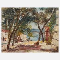 Blick auf das Meer mit Vegetation und Gebäuden, flott erfasste, teils gespachtelte Malerei, Öl auf Faserplatte, rechts unten monogrammiert „MG“, rückseitig bezeichnet „Martin Grünert Hof / Lindenstr. 22 >Strasse in Calla Millor Mallorca Spanien<“, gerahmt, Falzmaß ca. 34 x 41,5 cm. Künstlerinfo: genannt „Maler vom Vertl“, dt. Landschafts-, Blumen- und Vedutenmaler (1909 Hof bis 1993 Hof), 1924-27 Lehre zum Musterzeichner, stud. 1928-31 an der staatlichen Kunstschule Plauen, anschließend als Textilentwerfer u. a. in Berlin tätig, 1938-78 als Musterzeichner, Lehrausbilder und Leiter des Musterbüros bei Lorenz Summa & Söhne in Oberkotzau, 1940-50 Kriegsdienst und -Gefangenschaft, 1965 Fernstudium und Diplom der Ecole de Paris, unternahm Studienreisen durch Europa und den Iran, Mitgl. der Künstlergruppe Nordfranken, 1989 Ehrung mit der „Johann-Christian-Reinhart-Plakette“ der Stadt Hof, Quelle: Kulturamt der Stadt Hof und Internet.