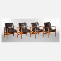 Entwurf Frank Reenskaug für Brahmin Møbler Model 182 um 1958, original bezogenes Sitzkissen, guter Zustand, H 87 x B 68 x T 78 cm.