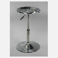 Ende 20. Jh., Stahlblech verchromt, sattelähnlich gemuldeter Sitz, drehbar und höhenverstellbar, Z1-2, H 62 cm.