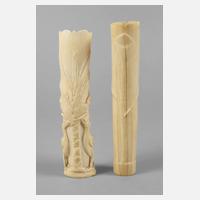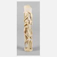 Anfang 20. Jh., aus einem Stück geschnitzter Tubus mit durchbrochen gerabeitetem Rankenmotiv und sitzenden Vögeln, Mündung etwas best., H 25 cm.