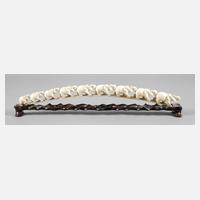 um 1920, Elfenbein fein beschnitzt, teils geschwärzt, Zug aus neun verschieden großen Elefanten, auf Holzsockel montiert, min. Altersspuren, etwas trocknungsrissig, L 42 cm.