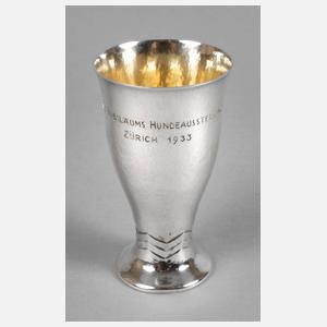 graviert, handgetrieben und innen vergoldet, gestempelt 800, unleserliche Herstellermarke mit Stern im Dreieck, H 11,5 cm, G ca. 113 g.