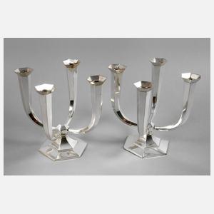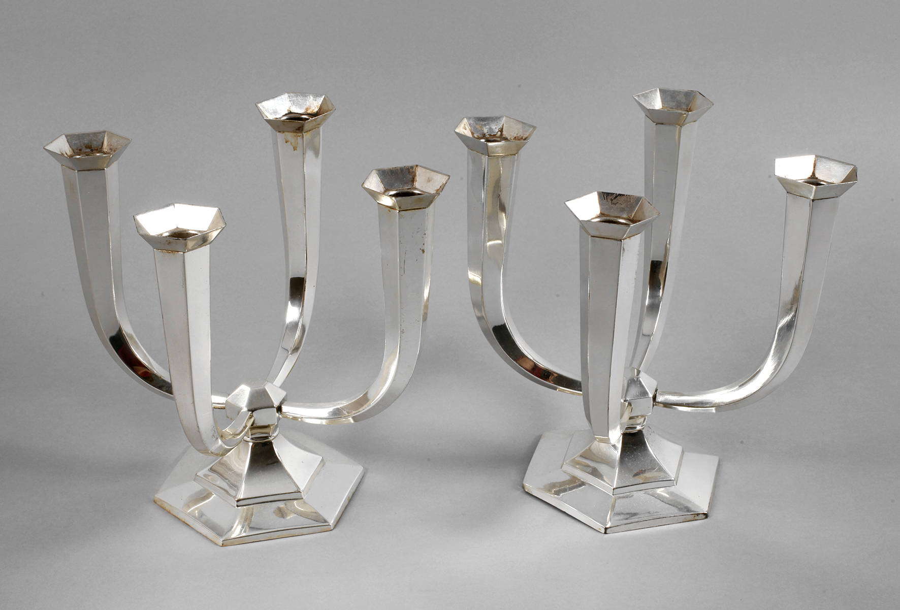 1930er Jahre, Prägemarke, Modellnummer 093, Metall verchromt, facettiert, mit je vier gebogten, feststehenden Armen, vertiefte Tüllen, kaum Gebrauchsspuren, H 23 cm.