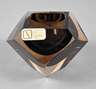 2. Hälfte 20. Jh., Klebeetikett V. Nason & C.Murano Italy, hellbraunes und dunkelbraunes Glas, vierfach facettiert, waagerechte Mündung, gute Erhaltung, H 8 cm.