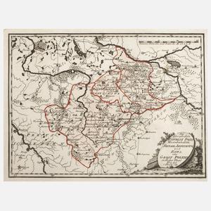 Darstellung des Gebietes zwischen Breslau, Posen, Warschau und Czestochowa, rechts unten in Kartusche bezeichnet „Der Königlichen Republik Polen Woiwodschaften Sieradz, Lenschitz und Rawa oder Gross Polens südlicher Theil Nro. 40 ...” und Stechersignatur ”... I. Albrecht sculp.“, grenzkolorierter Kupferstich, Ende 18. Jh., leichte Erhaltungsmängel, in Passepartout unter Glas gerahmt, Passepartoutausschnitt ca. 23 x 30,5 cm. Künstlerinfo: österr. Verleger, Kartograf, Buchhändler und Schriftsteller (1766 Wien bis 1820 Wien), Sohn des aus Rußland stämmigen Hofmeisters Johann Reilly, zunächst für drei Jahre unbezahlt tätig im österr. Staatsdienst, 1789 mit väterlichem Erbteil Hinwendung zur Geographie und Gründung des ”Landkarten- und Kunstwerke-Verschleiß-Komptoir“, brachte in folge zahlreiche wegweisende Atlaswerke heraus wie 1789-1806 ”Schauplatz der fünf Theile der Welt”, 1791-92 den ”Schul Atlas”, 1792-93 die ”Allgemeinen Erdbeschreibung”, 1794-96 den ”Grossen deutschen Atlas” und 1799 den ”Allgemeinen Post Atlas von der ganzen Welt”, anschließend wandte er sich der Schriftstellerei zu und veröffentlichte zahlreiche Werke, tätig in Wien, Quelle: Biographisches Lexikon des Kaisertums Österreich, Österreichisches Biographisches Lexikon, Deutsche Biographie und Internet.