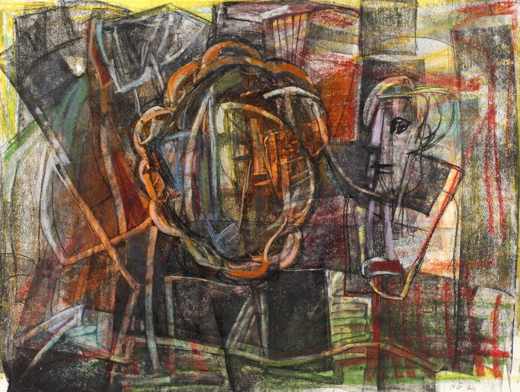 Mischtechnik, rechts unten monogrammiert und datiert „HG (19)74“, unfrisch, ungerahmt, Blattmaß ca. 36 x 48 cm. Künstlerinfo: dt.-jüdische Malerin und Graphikerin (1897 Leipzig bis 1980 Kitzbühel), Kindheit in Leipzig, studierte 1914-17 an der Akademie Leipzig bei Hugo Steiner-Prag und Tanzunterricht nach der Methode von Emile Jaques-Dalcroze, ab 1918 Privatschülerin von Otto Richard Bossert, ab 1919 Ballettunterricht an der Oper Leipzig und Gestaltung von Bühnenbildern, ab 1920 Studium an der Akademie Dresden bei Otto Hettner und hier 1921-23 Schülerin von Oskar Kokoschka, 1923 Studienreise in die USA, 1926-27 Studium an der Académie Colarossi in Paris, Studienaufenthalte in Südfrankreich, 1928 Aufenthalt in Rom, Florenz und auf Capri, ab 1932 in München ansässig, 1933 Übersiedlung von Leipzig nach Kitzbühel, 1939-50 Emigration nach England, 1950 Rückkehr nach Kitzbühel, 1954 erste Teilnahme und ab 1955 Lehrerin an der Internationalen Sommerakademie Salzburg, 1956-72 regelmäßige Aufenthalte in Venedig, 1968 Reise nach Israel, 1974 Ehrung mit dem Professorentitel, Quelle: Vollmer, Dressler, Wikipedia und Internet.