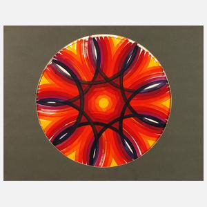 geometrische Anordnung verschiedener warmer Farbtöne, Deckfarben, unsigniert, Erhaltungsmängel, im Passepartout montiert, Passepartoutausschnitt Durchmesser ca. 34,5cm. Künstlerinfo: dt.-jüdische Malerin und Graphikerin (1897 Leipzig bis 1980 Kitzbühel), Kindheit in Leipzig, studierte 1914-17 an der Akademie Leipzig bei Hugo Steiner-Prag und Tanzunterricht nach der Methode von Emile Jaques-Dalcroze, ab 1918 Privatschülerin von Otto Richard Bossert, ab 1919 Ballettunterricht an der Oper Leipzig und Gestaltung von Bühnenbildern, ab 1920 Studium an der Akademie Dresden bei Otto Hettner und hier 1921-23 Schülerin von Oskar Kokoschka, 1923 Studienreise in die USA, 1926-27 Studium an der Académie Colarossi in Paris, Studienaufenthalte in Südfrankreich, 1928 Aufenthalt in Rom, Florenz und auf Capri, ab 1932 in München ansässig, 1933 Übersiedlung von Leipzig nach Kitzbühel, 1939-50 Emigration nach England, 1950 Rückkehr nach Kitzbühel, 1954 erste Teilnahme und ab 1955 Lehrerin an der Internationalen Sommerakademie Salzburg, 1956-72 regelmäßige Aufenthalte in Venedig, 1968 Reise nach Israel, 1974 Ehrung mit dem Professorentitel, Quelle: Vollmer, Dressler, Wikipedia und Internet.