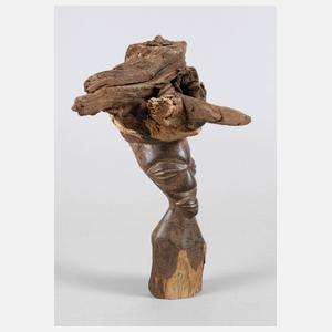 wohl Elfenbeinküste, 20. Jh., aus einem Wurzelstück des Ebenholzbaumes herausgearbeitete Büste, teilweise naturbelassen, geschnitzte Gesichtspartie, H 25 cm.