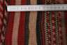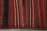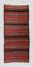 Mitte 20. Jh., flachgewebte quergestreiftes Modell in Rot, Creme und Dunkelbraun, Fransenbesatz gekürzt, Alters- und Gebrauchsspuren, Maße 292 x 140 cm.