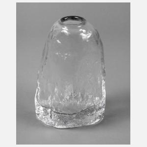 1980er Jahre, massives Klarglas, modelgeblasen, ausgekugelter Abriss, unregelmäßige Oberfläche, polierte Mündung, Gebrauchsspuren, H 20 cm.
