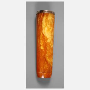 1. Hälfte 20. Jh., Silber gestempelt 835, trüber, marmorierter, kräftig gelber, geschliffen und polierter Bernstein, Länge 62 mm, Gewicht ca. 9,7 g, in Originaletui.
