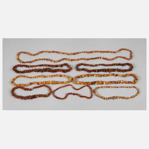 2. Hälfte 20. Jh., ungeschliffen, in verschiedenen Farbtönen, teils mit Verschluss, max. Steingröße 22 mm, Länge max. 135 cm, Gesamtgewicht ca. 337 g.