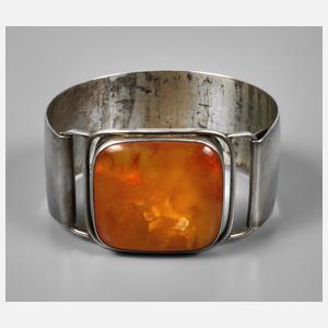 Silberarmspange mit großem Bernsteincabochon