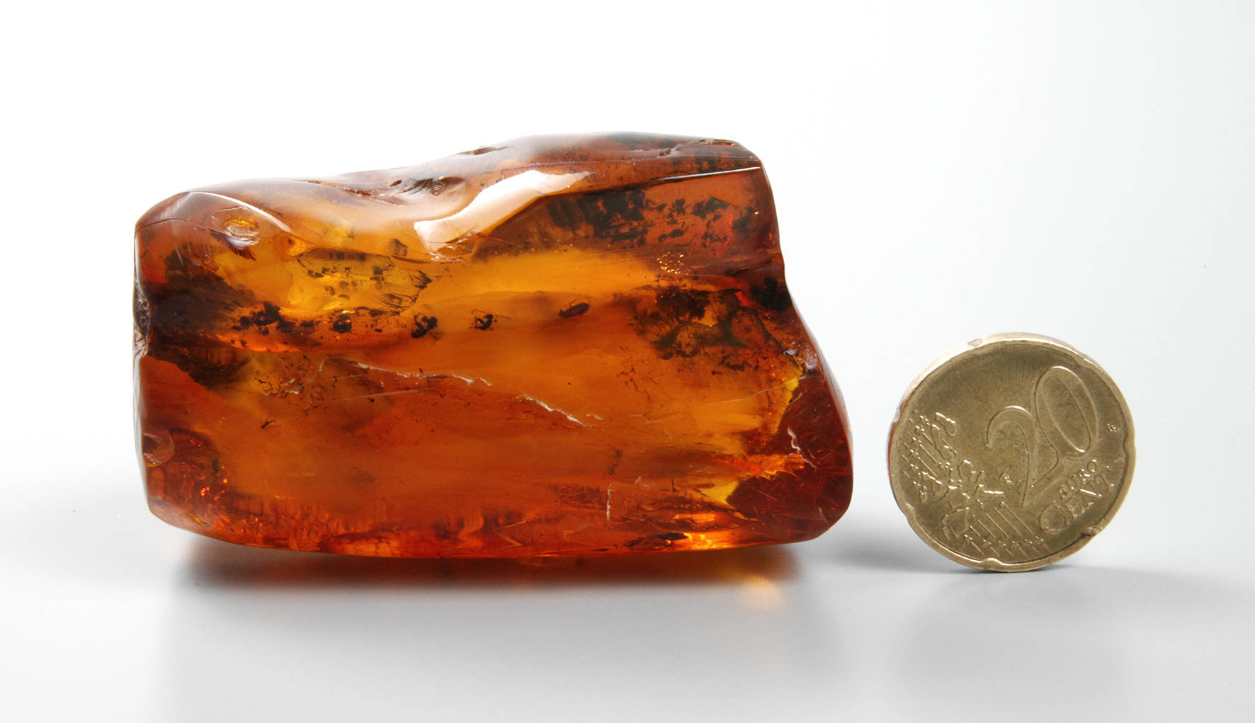2. Hälfte 20 Jh., größtenteils angeschliffen, im Inneren diverse Insekten, Größe ca. 66 x 52 x 30 mm, Gewicht ca. 53,8 g.