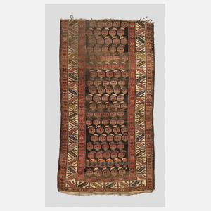 1. H. 20. Jh., rapportierender geometrischer Dekor in erdiger Tonigkeit, dreiteilige Randbordüre, starke Erhaltungsmängel, Maße 120 x 200 cm.