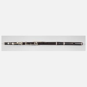 um 1930, gemarkt Rep. Glassa Fürth i. B., fünfteilig gesteckter Korpus aus Palisander, vernickelte Metallmontierungen, ein Segment mit verfestigter Rissbildung, oberer Abschluss fehlt, L ges. 68 cm.