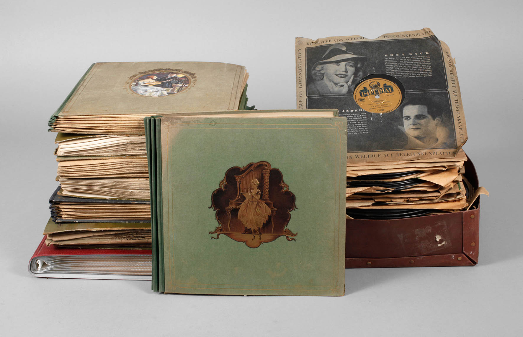 um 1930, ca. 165 Stück, tlw. im Album, darunter Imperial, Electrola, Isiphon, Amiga, Calliope, Polyphon, Audiphon etc., dabei Märsche, Unterhaltungs- und Tanzmusik, Klassik, Mundart etc., untersch. Maße und Erhaltungen.