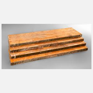 wohl 1950er Jahre, vier große Platten aus Eisenprofilen mit aufgeleimtem Stabparkett, Nutzschicht 8–10 mm, an den Stirnseiten Löcher zum Verschrauben, Maße je 200 x 48 x 8 cm.