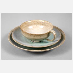 1940er Jahre, Prägemarke, dazu ein unleserliches Zeichen, ziegelroter Scherben, Glasur in Seladongrün, grüngrau und bräunlich gesprenkelt, guter unbeschädigter Zustand, D max. 17 cm. Künstlerinfo: geboren 1905 in Keula/Thürigen, Ausbildung bei Kurt Feuerriegel in Frohburg, Bunzlau und auf der Burg Giebichenstein unter Marguerite Friedländer, Gerhard Marcks und Franz Wildenhain, Goldmedaille bei der Weltausstellung in Paris, verschiedene weitere Preise. Quelle: Gisela Reineking von Bock, Keramik des 20. Jh. Deutschland, Keysersche Verlagsbuchhandlung München 1997.