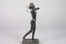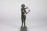 1. Hälfte 20. Jh., auf der Plinthe signiert und datiert ”F Cauer 1904”, Bronze dunkel-grünlich patiniert, eleganter, stehender weiblicher Akt in schreitender Pose mit Reifen und Stab, auf flacher rechteckiger Plinthe, auf einen ebenfalls rechteckigen Serpentinsockel montiert, minimale Altersspuren am Reifen und Stab, sonst gute Erhaltung, Sockel minimal bestoßen, H Bronze 30 cm, H gesamt 32 cm. Künstlerinfo: Friedrich Cauer (1874 Kreuznach bis 1945 ?) Sohn des Robert Cauer, studierte an den Akademien in Kassel, München, Karlsruhe und Stuttgart vorwiegend Malerei, arbeitet später als Plastiker, die Figur der Reifenspielerin wurde auf der Großen Berliner Kunstausstellung gezeigt. Quelle: Thieme/Becker und Internet.