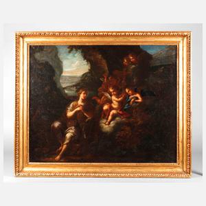 die Bibel berichtet von Maria aus Magdala, genannt Maria Magdalena, als reuiger Sünderin und Jüngerin Jesu, die Christus besonders nahe stand und mit Johannes und Jesu Mutter Maria der Kreuzigung beiwohnte, sie beteiligte sich an Jesu Grablegung, entdeckte am Morgen nach dem Sabbat das leere Grab und war der erste Mensch, dem der auferstandene Jesus erschien, hier endet die Überlieferung der Bibel, den weiteren Lebensweg schildert die Legenda aurea in Variationen, eine besagt, dass Maria Magdalena mit ihren Geschwistern Lazarus und Martha sowie dem späteren Bischof von Aix-en-Provence Maxim von christenfeindlichen Juden in einem segel- und steuerlosem Schiff dem Meer übergeben wurden, mit Gottes Fügung erreichte das Schiff Marseille, anschließend soll Maria Magdalena einige Jahre als büßende Einsiedlerin in einer Höhle nahe dem heutigen Plan-d'Aulps-de-Sainte-Baume gelebt haben, das vorliegende Gemälde thematisiert eben jene Lebensstation Maria Magdalenas, die vom spätem Mittelalter bis in die frühe Neuzeit ein beliebtes Sujet der Bildenden Kunst war, da Maria Magdalena der Überlieferung gemäß meist nahezu nackt mit langem wallenden Haar beschrieben wurde und so einen trefflich verbrämten Vorwand der Darstellung subtiler Erotik lieferte, im vorliegenden Gemälde ist Maria jedoch ärmlich, wenngleich züchtig bekleidet, in andächtiger Pose dargestellt und verkörpert den Typus der tief religiösen Christin, sie wurde als Inbegriff der selbst büßenden Heiligen Vorbild und Schutzpatronin der reuigen Sünderinnen und Verführten verehrt, was nicht zuletzt ab dem 13. Jh. in der Gründung der ”Magdalenen-Orden” beredten Niederschlag fand, die erzählerische Szene entführt den Betrachter in eine dunkle Grotte, die sich links zur Landschaft mit felsiger Küste und weitem Meerblick öffnet und einen Hinweis auf die Ankunft Maria Magdalenas in Frankreich gibt, links sitzt die andächtige Maria, zur mittig auf Wolken thronenden Engelschar mit Kruzifix blickend, unscheinbar sind die Attribute der Heiligen ins Bild eingearbeitet, links unten auf einer Steinplatte ist das kugelförmige Salbgefäß zu sehen, der Totenschädel in Marias Schoß ist, genau wie das nahezu mittig zu Marias Füßen stehende Stundenglas, als eindringliches Memento mori zu verstehen, der gläubige Betrachter des Gemäldes wusste diese Hinweise zu deuten und eingedenk der Ermahnung Johannes des Täufers (Matth. 3:2) ”Tut Buße, das Himmelreich ist nahe herbeigekommen!” muss das Gemälde auch als Hinweis der Endlichkeit allen irdischen Seins und der Aufforderung zur rechtzeitigen Reue und Buße für begangene Sünden angesehen werden, fein lasierende, religiöse Genremalerei, die in der formalen Durchführung, als auch der effektvoll-dramatischen Behandlung des Lichtes, an die Malerei der italienischen Malerfamilie des 16./17. Jh., Carracci erinnert, Öl auf grober Leinwand, wohl 16./17. Jh., unsigniert, rückseitig undeutlich gestempelt ”... Bundesdenkmalamt ...” (eventuell Ausfuhrstempel des Österreichischen Bundesdenkmalamtes), Craquelure, restauriert, sehr schön im gestuckten, vergoldeten klassizistischen Rahmen um 1800 gerahmt (gering bestoßen), Falzmaß ca. 68,5 x 84 cm.