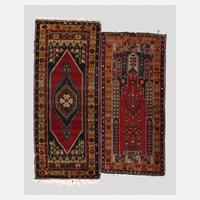Mitte 20. Jh., handgeknüpft, floraler Dekor, Fransenbesatz teils gekürzt, Maße 162 x 89 cm und 166 x 99 cm.