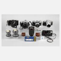 vorwiegend 2. Hälfte 20. Jh., dabei Fotoapparat Zeiss Ikon Contaflex, Objektiv gemarkt Tessar 2,8/50, sowie Exakta Varex 2A, dazu Plattenkamera Zeiss Ikon Ikonta sowie eine moderne Kamera Minolta, Objektiv gemarkt Sigmar Zoom 28–105 mm 1/2,8-4, des Weiteren Nikon TW Zoom, zusätzlich Objektiv Tokina SZ-X 28–200mm 1/3,5-5,3, Objektiv Pro-Tessar 1/4 F=115 mm und Objektiv Pro-Tessar 1/3,2 F=35 mm, ebenfalls dazu zahlreiche Anleitungen und etc.