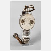 Frankreich, 1920er Jahre, vernickeltes Gehäuse, zwei Skalen bis 150 Volt, eine Seite mit Lampenfassung, die andere Seite mit Stecker, orig. stoffummanteltes Kabel, Funktion nicht geprüft, Z2, L 19 cm.