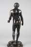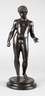 1. Hälfte 20. Jh., ungemarkt, Metallguss dunkelbraun patiniert, verkleinerte Kopie nach der originalen Marmorplastik, die sich vormals in der Carracci Gallerie des Palazzo Farnese in Rom befand und heute im Archäologischem Nationalmuseum Neapel verwahrt wird, sie zeigt auf einer ornamental reliefierten Rundplinthe den jungen athletischen Antinoos als Aktfigur, Günstling und vermutlich Geliebter des römischen Kaisers Hadrian, der nach seinem Tod zum Gott erklärt und hoch verehrt wurde, Oberfläche mit leichten Altersspuren, H 40 cm.