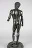 Ende 19. Jh., ungemarkt, Bronze dunkelbraun patiniert, verkleinerte Kopie nach der originalen Marmorplastik, die sich vormals in der Carracci Gallerie des Palazzo Farnese in Rom befand und heute im Archäologischem Nationalmuseum Neapel verwahrt wird, sie zeigt auf einer ornamental reliefierten Rundplinthe den jungen athletischen Antinoos als Aktfigur, Günstling und vermutlich Geliebter des römischen Kaisers Hadrian, der nach seinem Tod zum Gott erklärt und hoch verehrt wurde, Oberfläche mit leichten Altersspuren, H 62 cm.